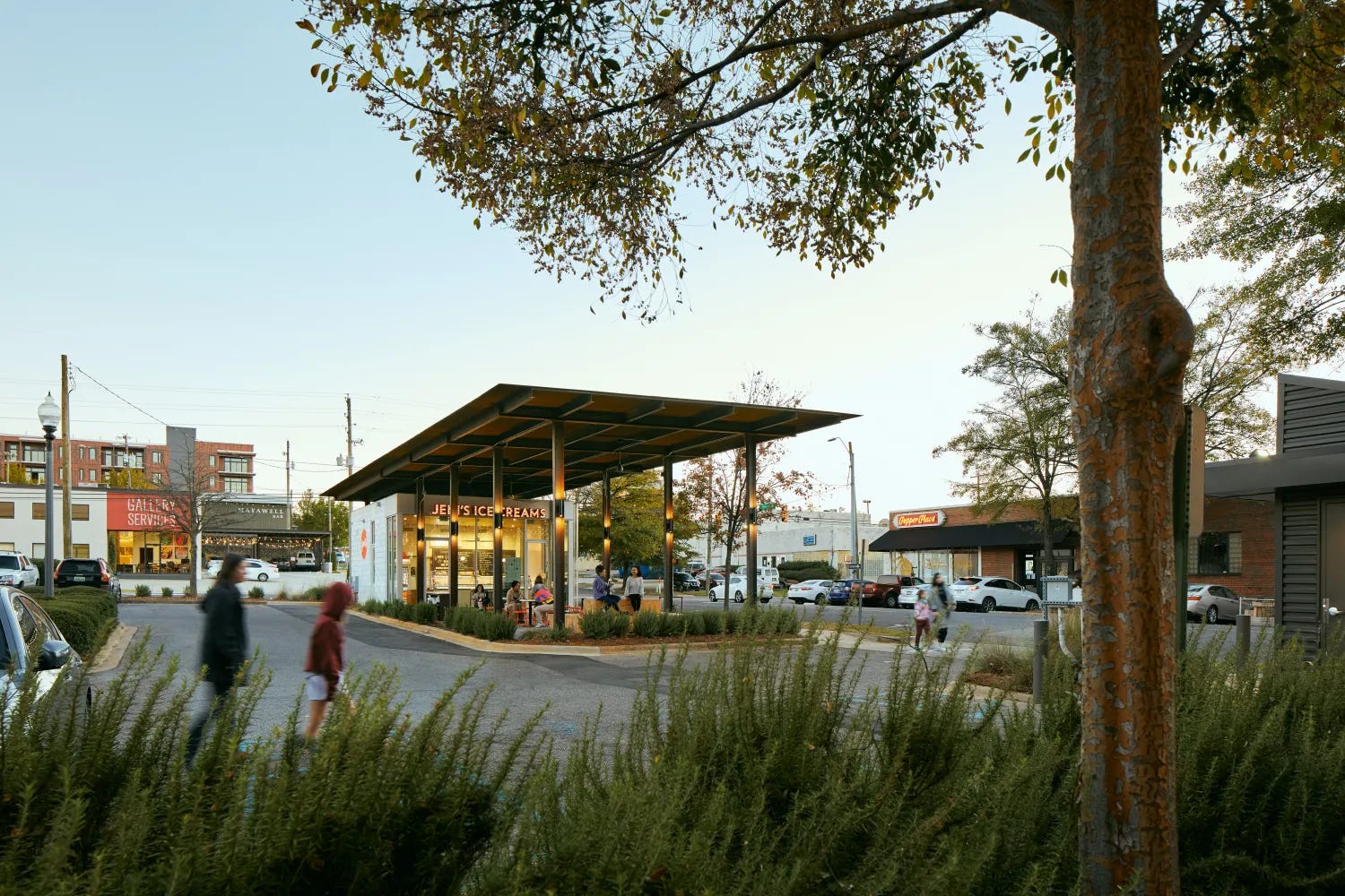 "Every move makes a pretty big wake here,". And DBA has made several. Some are literal cornerstones, like Jeni’s Ice Cream pavilion at Pepper Place. It anchors the street corner of Pepper Place through the week, bringing people to a corner that would have been another few parking spaces. Another signature DBA project in Birmingham is the striking black condos with shed roofs and rusted balconies on 2nd Ave South.