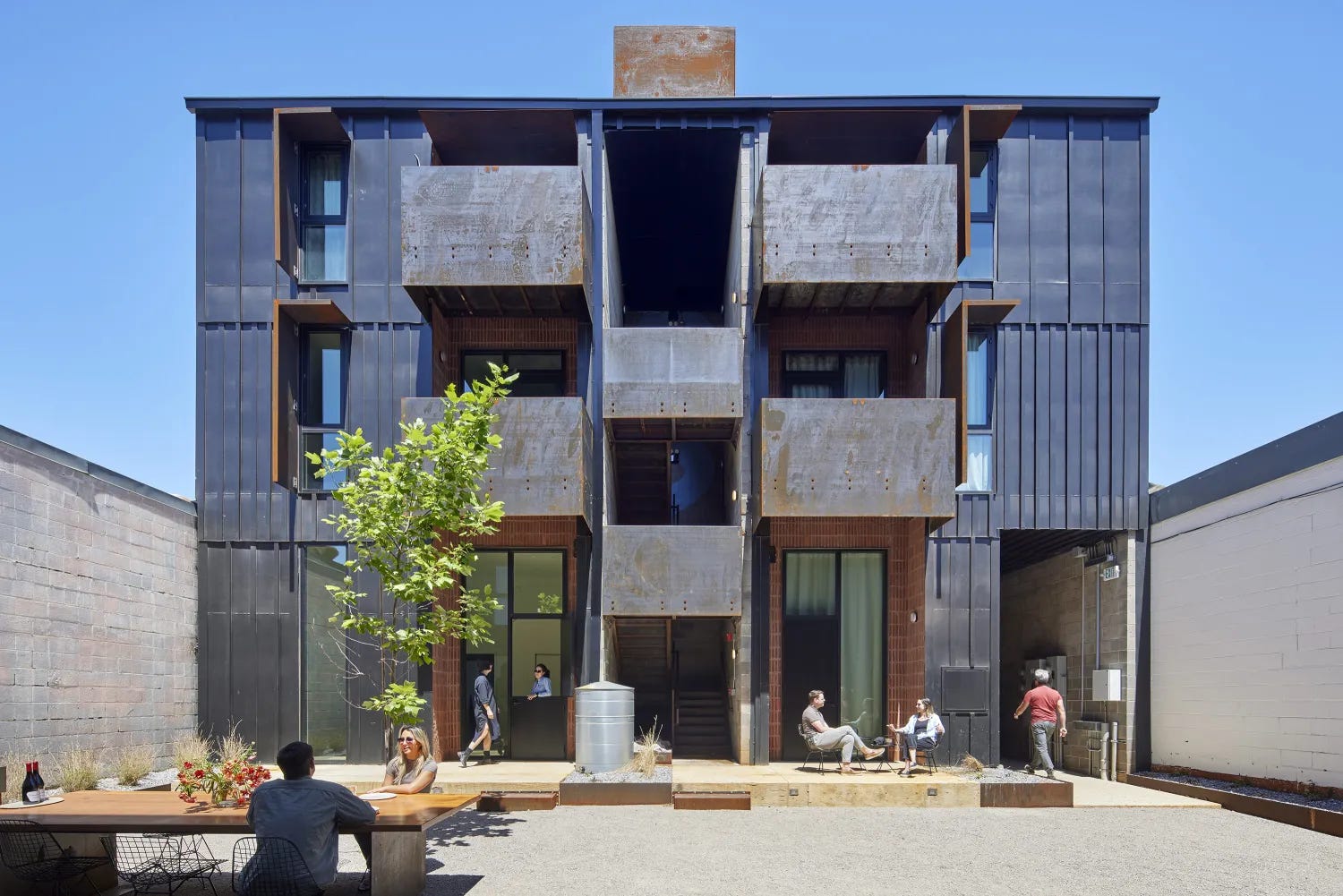 The building includes live-work units on the ground floor that are currently rented as short-term rentals. But the hope is that over time, commerce will return to that sliver of street. "You need a dozen projects like this, strung together, to rebuild a block."